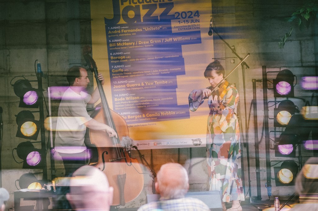 Borage is Megan Jowett and James Banner. They play brittle, strange, dark, weird and vibrant improvised music inspired by animals, plants and governments on strings and voices. Borage self-released their first album transitory in 2023 with a tour in Berlin, Zurich, Copenhagen, Stockholm, Uppsala and Bonn, featuring guests including Declan Forde, Eva Lindal and Aurora Nealand, partially supported by Musikfonds. After concerts at Jazz No Picadeiro and a residency at BOTA in Lisbon with João Lopes Pereira and Mariana Dionísio in summer 2024, their second release DRESSAGE, an electroacoustic concept album, was released on 6.12.2024 via Robalo Music in Lisbon – listen/buy here.
